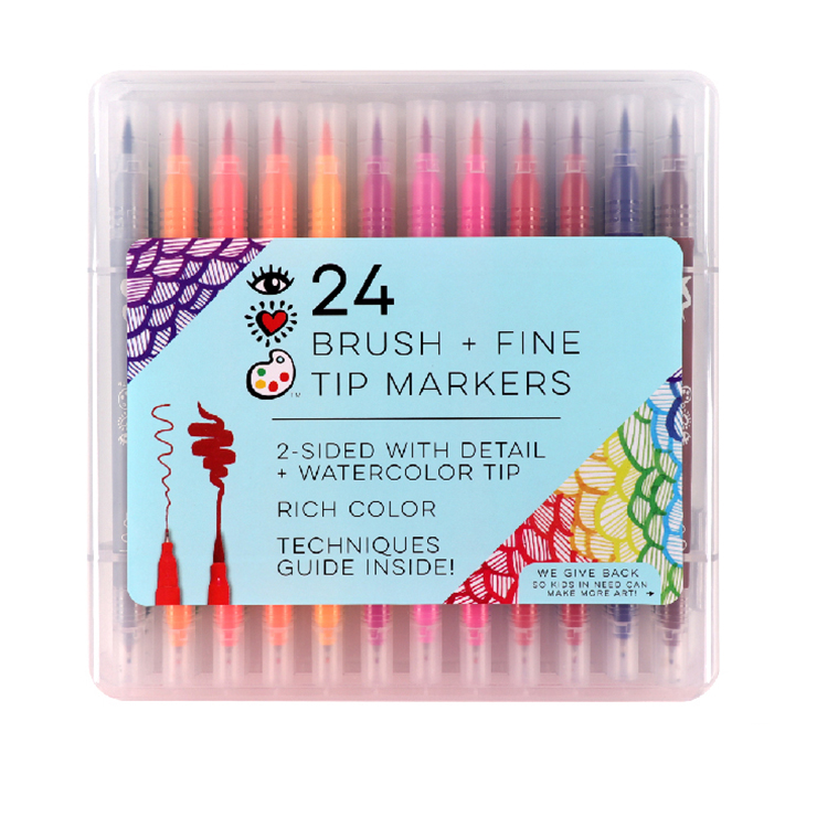2 sided tips: brush tip for coloring & shading and fine tip for details and outlining; 24 Assorted Colors in Plastic Case