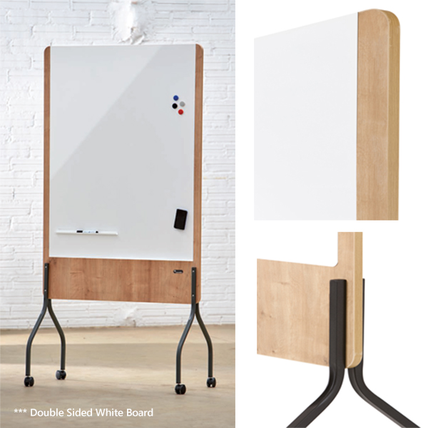 Mobile whiteboard (double sided) from Natural range. Magnetic whiteboard surfaces suitable for use with dry erase markers and magnetic accessories. Ideal collaboration tool and assist in sharing ideas and planning.