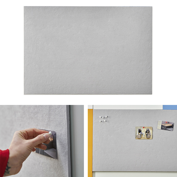 SkinPINBOARD is a frameless, upholstered, modular panel, designed for attaching documents using pins or other clamping elements. Its modern design allows them to be positioned vertically and horizontally to create multiple combinations. Available in Gray color, with hassle-free installation, saving time and money. Size: 75 x 115 x 1 cm