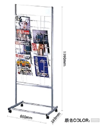 Size: 550W X 365D X 1350H mm | Can fit A4 and Letter Size Paper | Best for displaying brchures, leaflets, pamphlets, flyers, magazines, and catalogs | Provision for 16 racks| With wheels for easy mobility | Delivered unassembled.