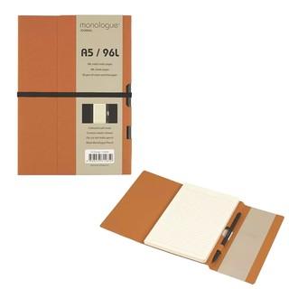 Monologue Brand Journal Notebook with lines. Pencil Included. Coloured board cover with 80 gsm acid free cream woodfree paper 96sheets ruled lines. Colour elastic band
