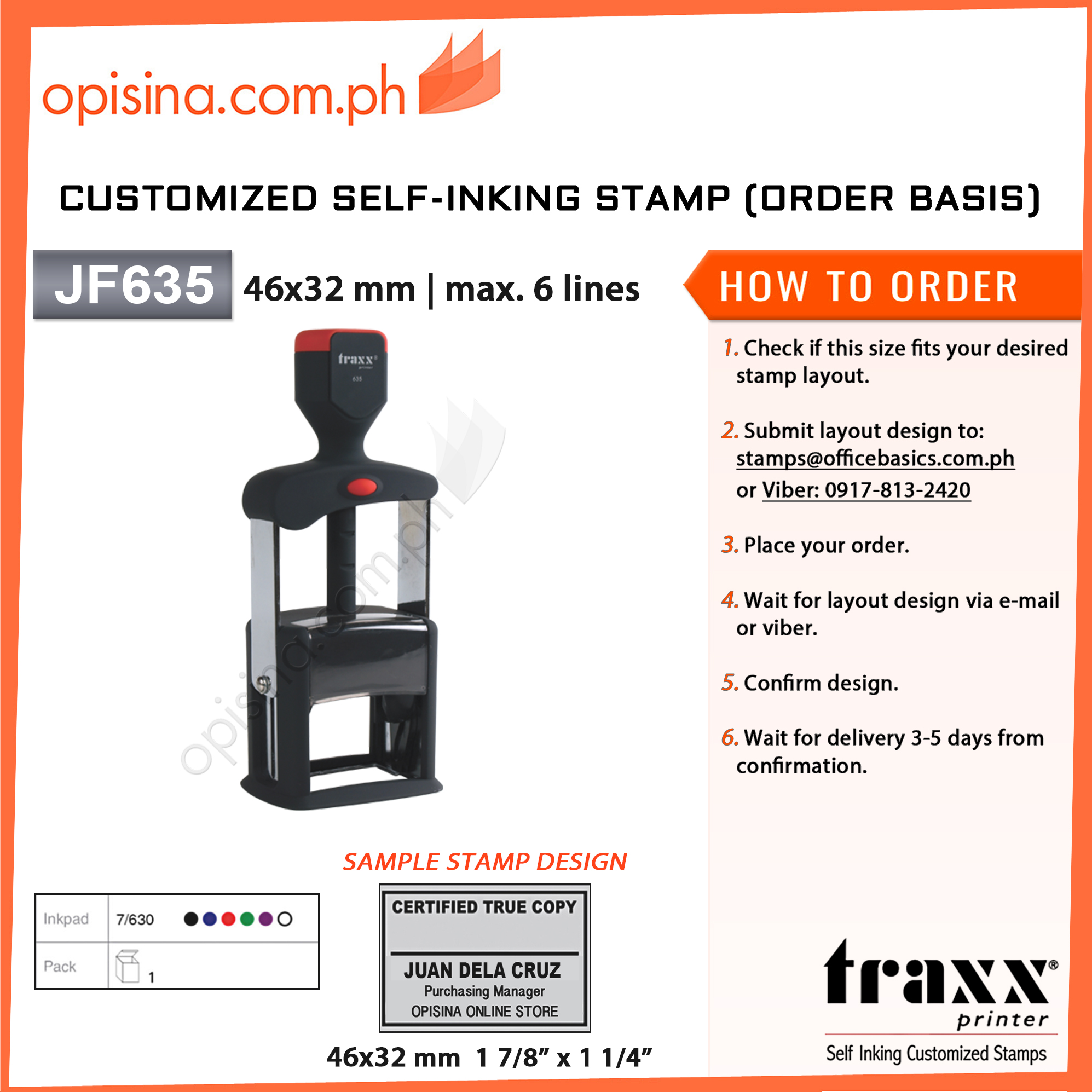 Product ImageProduct DescriptionDescription:Traxx Brand Self Inking Customized Stamps that fits size , order basis SKU: 316127UOM: PIECEDimension: 6 × 8 × 18 cmWeight: 280 gAvailability: NCR OnlyPrice Add to Cart FormPHP 1,100.00 Quantity-+ Add to cart