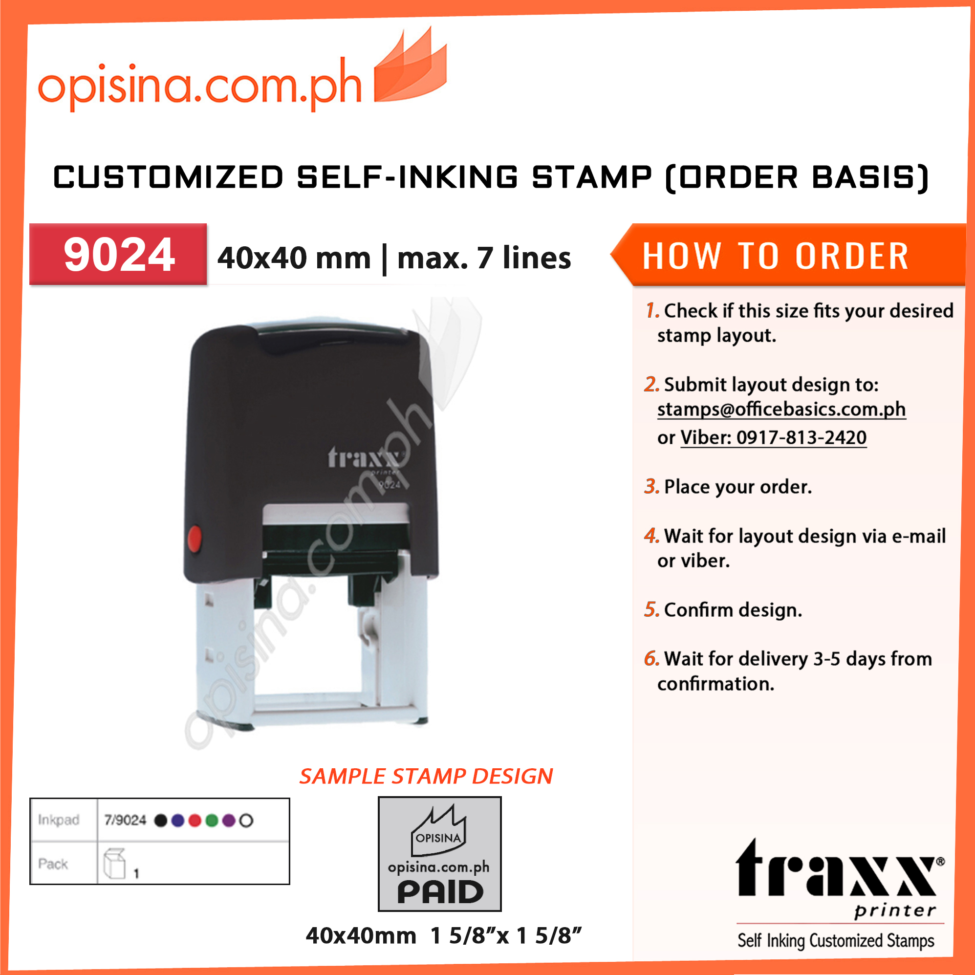 Product ImageProduct DescriptionDescription:Traxx Brand Self Inking Customized Stamps that fits size , order basis SKU: 316114UOM: PIECEDimension: 7 × 7 × 10 cmWeight: 150 gAvailability: NCR OnlyPrice Add to Cart FormPHP 700.00 Quantity-+ Add to cart